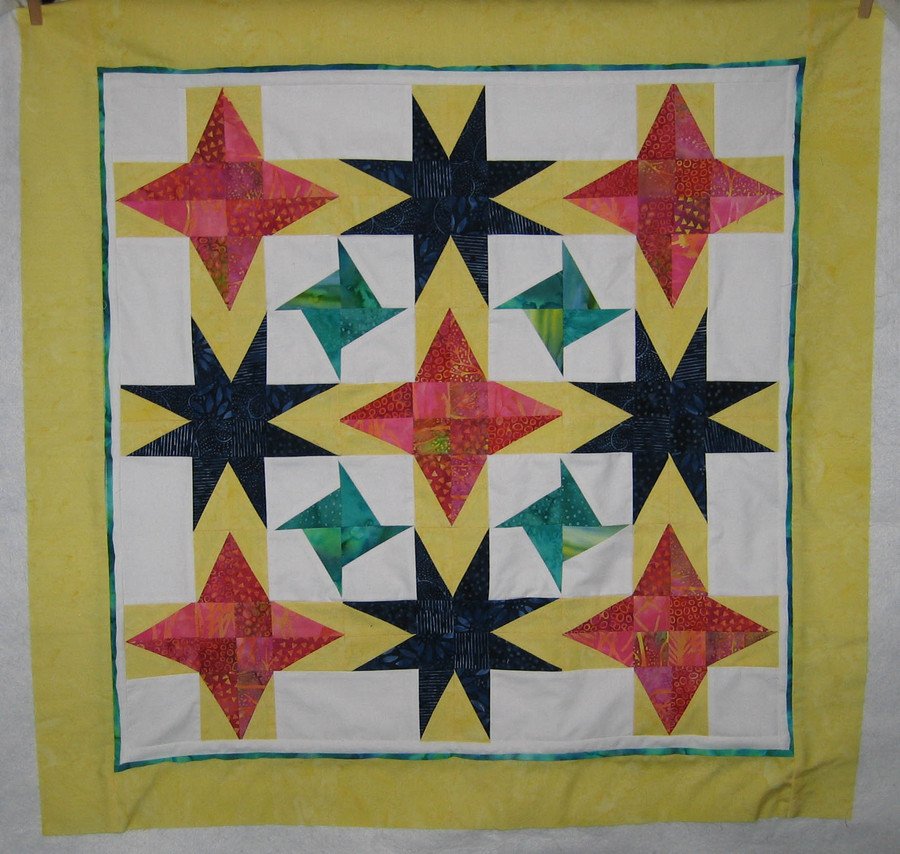 Kristin1 Follow the Stars - Machine pieced batiks, 3D border. 26" x 26 "
