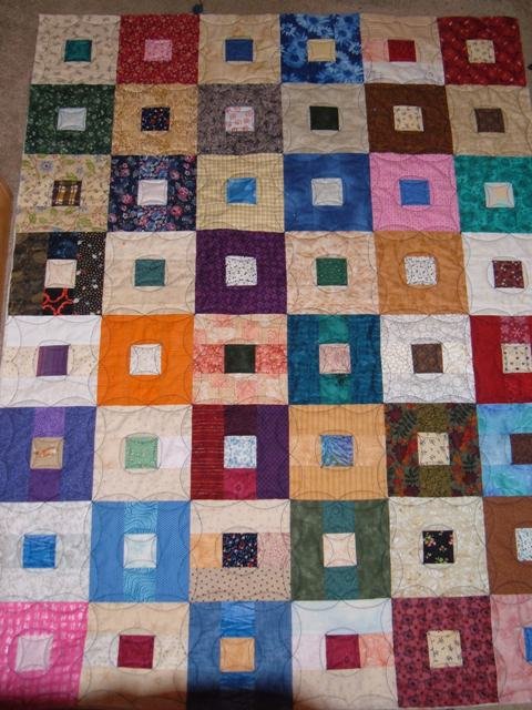 | Design Source - Description | I saw a quilt like this and really liked the design. Some of the large squares are all the same fabric, some just match closely. |