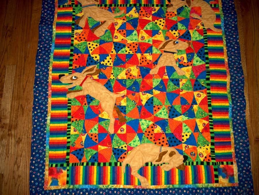 QuiltinDeb Puppy Dog Tails - I created this adorable quilt from scraps and then added Karen Brow's designs of the adorable puppy dogs. I gave it to my cousin on the birth of their first son.