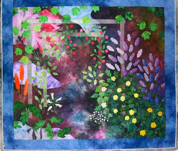 | Design Source - Description | Inspired by a small piece of fabric dyed by Ricky Tims which looked to me like there might be a garden path in it. The picture was designed around the background fabric. |