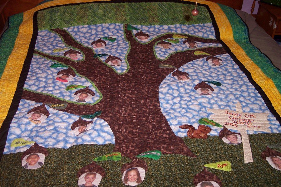 | Design Source - Description | Made for an auction at Shady Oak Christian School. The tree is the Shady Oak and the Acrons are the children's faces and of course Bill the Squirrel had to be in there too. |