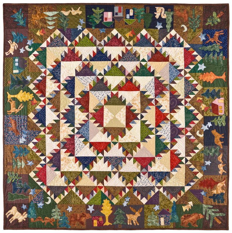 peggiew Uncle Buddy in the Mountains - I love this combination of scrappy mountains and forest animals. I named this quilt for my brother, Bud Bowden who passed away last year - all too young. He loved the mountains and forest animals - this quilt reminds me of him and how I would love to have given it to him.