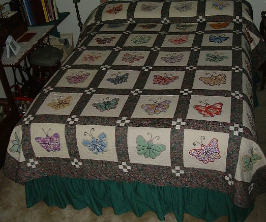 | Design Source - Description | I found the butterflies appliqued on muslin in Grandmother's cedar chest following her death. Saved them until I began quilting after retirement. |