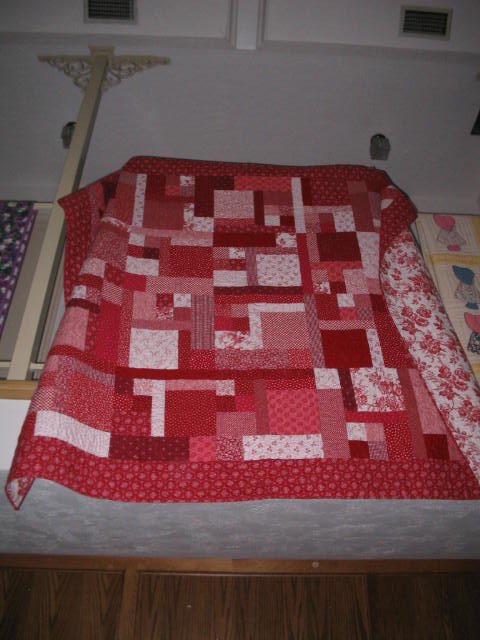 familyquilter Red and White - Always wanted a red and white quilt. Showed a Greater Houston Quilt Quilt show and tell. Libby Lehman was guest speaker and when she started her program she gave me an "A" for color blend. What a great surprise!