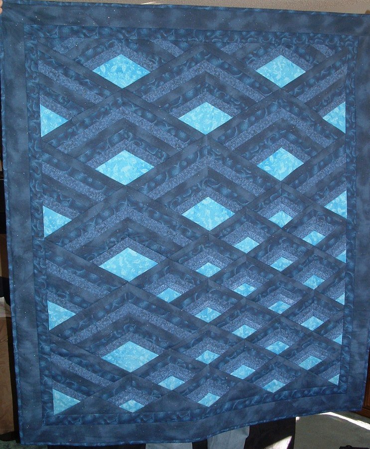 QuiltHappy Mystery of the Deep - A friend of mine wanted to make her first quilt and picked this one from one of my books. I really didn't know it would be more complex to make than it looked. We all wanted different color schemes and we had fun fabric shopping. I started mine first and came up with a bit quicker 'strip' method than what was in the original design. However, it sat as an unfinished project for far too long. I was the only one of the 3 who completed it.