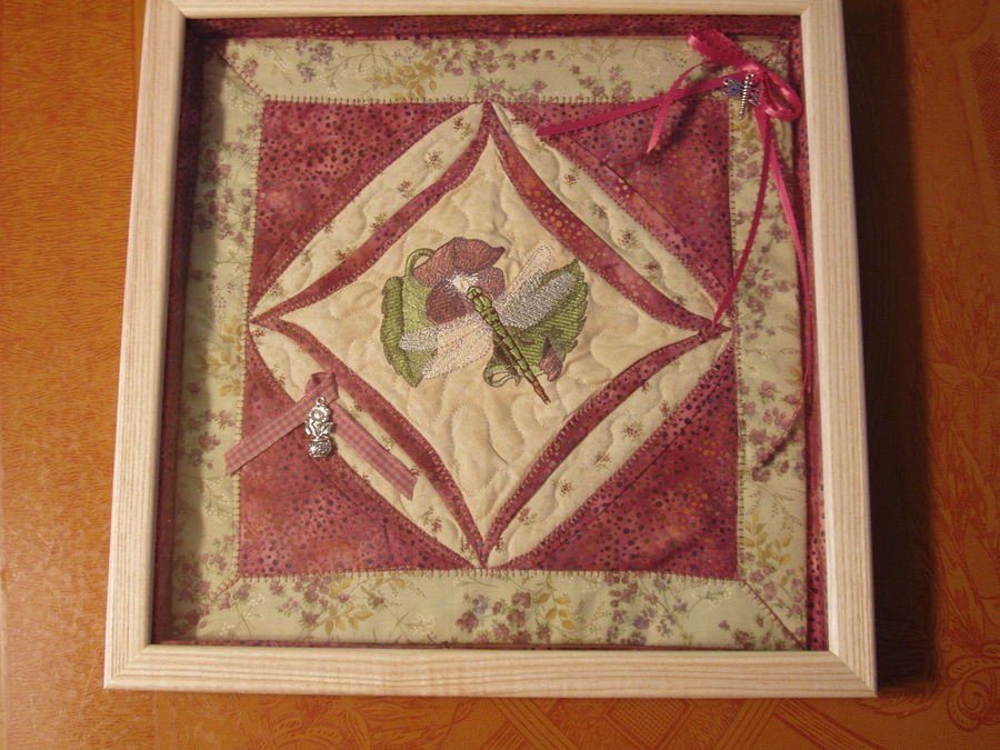 | Design Source - Description | 11 1/2" quilt block with a machine embroidered Dragonfly in the Peek A View area. |