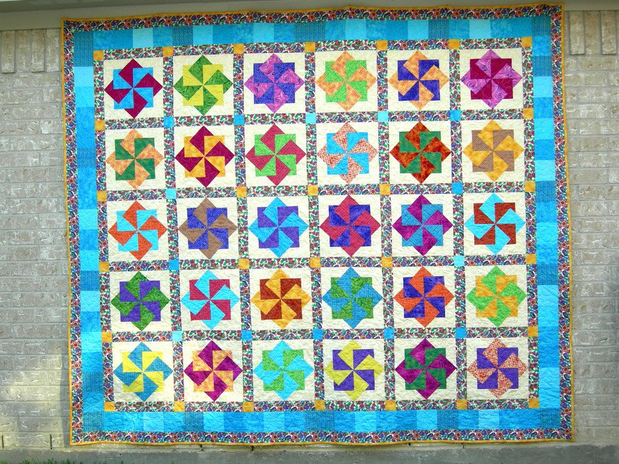 | Design Source - Description | I made this quilt for my niece's HS graduation. It is my very first queen size quilt. She wanted bright colors. The stars were paper pieced. |