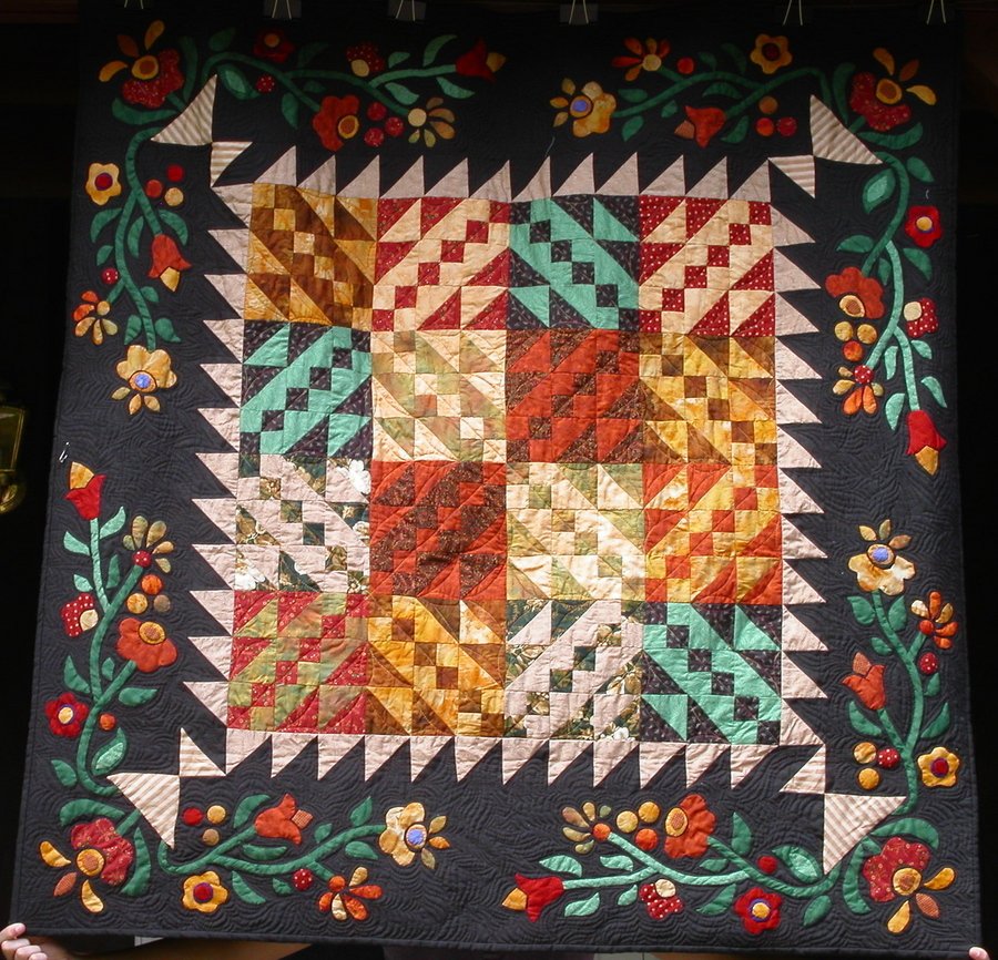 cactusbasket Jacob's Garden - Autumn colors and fun applique. I made two Jacob's Garden Quilts and the second on was used as a raffle for or church. It was won by Ted and Dorothy Foster, who live in Gresham, Wisconsin. I didn't get a pictue of this one.