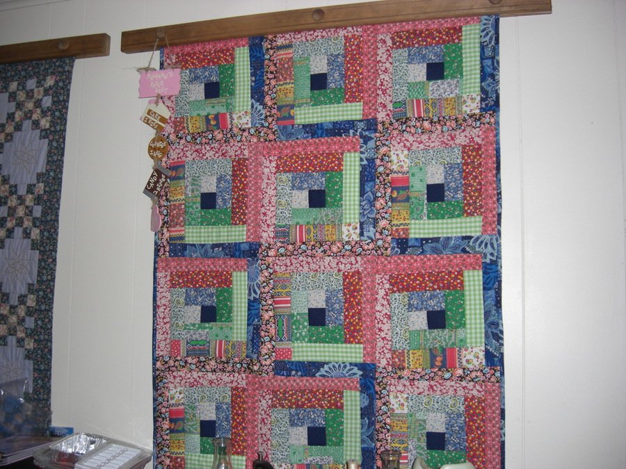 suesparker Log Cabin - I started out in the mid 70's working on this quilt but didn't get to finish it until the late 90's. I was going to give this as a baby quilt but my husband liked it so much he wanted it hung on the wall. I had lots of left overs from this quilt project and made 2 other quilts using some of the same fabrics.