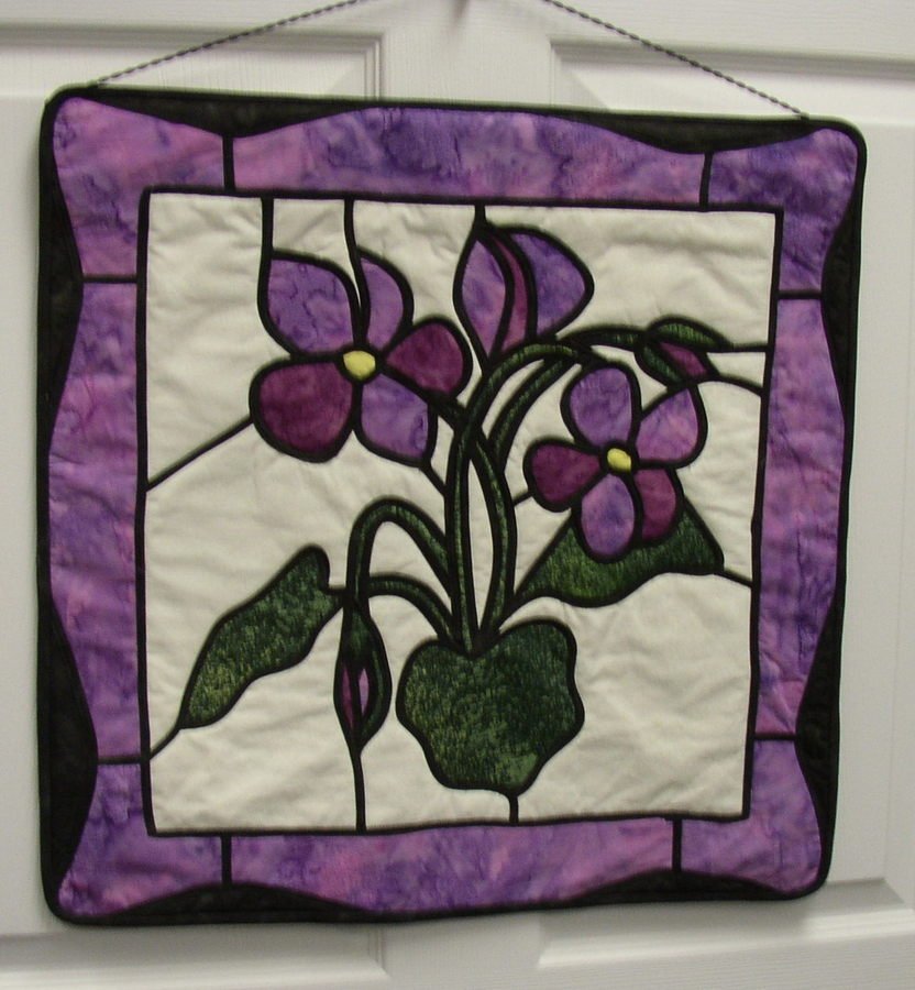 Purchased pattern in 1998 from Canadian Living magazine. I adapted the NB Purple Violet from this pattern and made the wall quilt in stained glass |