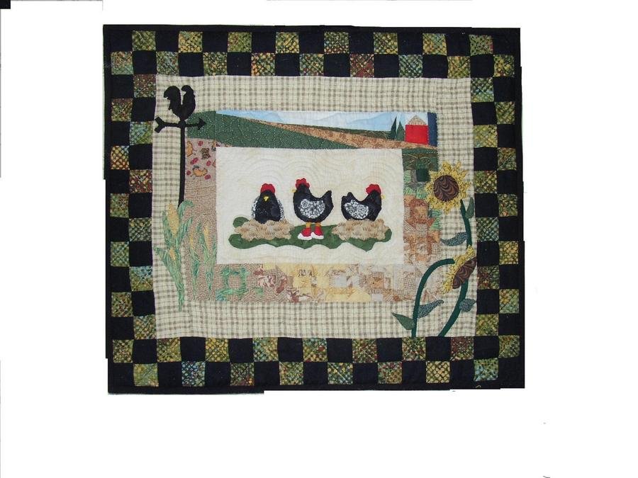 NBQuilter Rooster and His Chicks - Greater Moncton quilt Guild Round Robin, I made the center block and the piece was passed to 3 other guild members over a period of 4 months. each one adding a border.