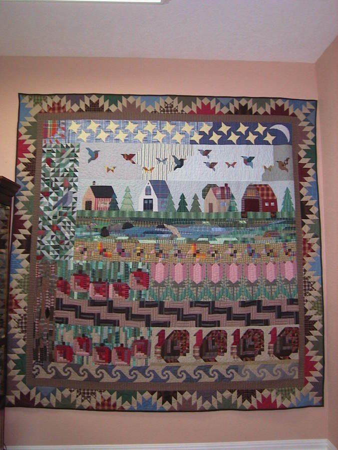 dotcollins Mother Earth - Mother Earth is a row quilt that provides instructions for the blocks that make up each row or partial row. A variety of techniques are used in the quilt and it provides a wonderful canvas for your own embellishments and modifications. It may be quilted by the row, quilting as you go. This quilt was published on the cover of Quilters Newsletter Magazine (October 1995) and the Lang Quilt Calendar (November 1996).