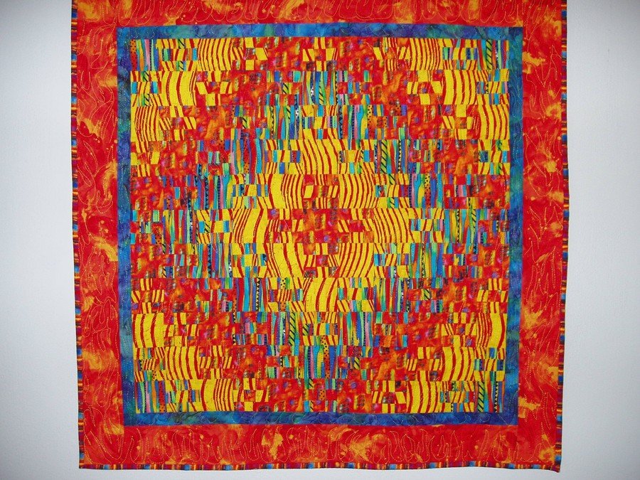 | Design Source - Description | This quilt is a result of a class given by a guild member at our guild's first retreat in 2005. I decided to take the traditional nine-patch out of its comfort zone to a more sizzling, hot zone. |