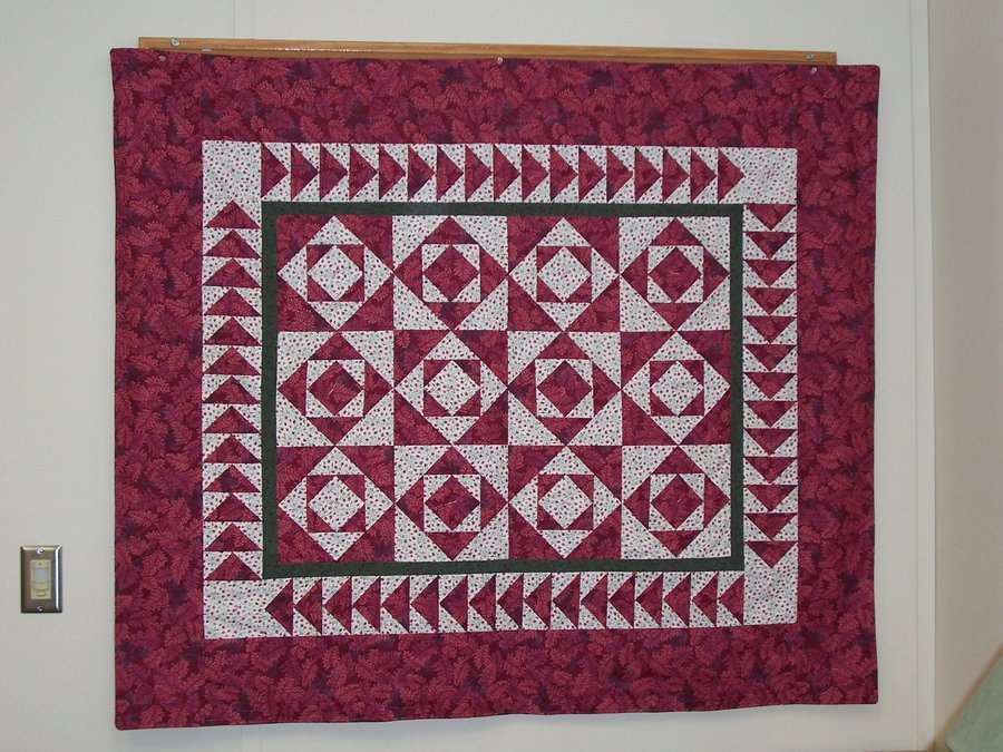 BBGirl Cranberry Cocktail - This quilt was my first attempt at foundation piecing. I purchased the printed foundation from a warehouse fabric store in NY. I wanted to try something I had never done before and was able to use fabric I had in my stash. I started it and stopped and lost interest. When my quild had a "UFO" meeting in January, I brought it to the meeting and was challenged to finish it by our end of year party in June (we break for the summer). I started working on the quilt again with new enthusiasm and found I really liked how it was coming along. So much so that I finished it by the middle of February! I gave it to my daughter for her 26th birthday. I used flannel on the back and tied it because she prefers tied quilts. She loved it!!! It's now hanging in her apartment.