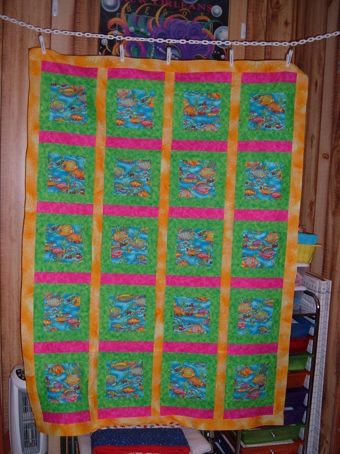 | Design Source - Description | Bright Colors, Aquarium fish in center block with Green,Gold and Deep Pink |