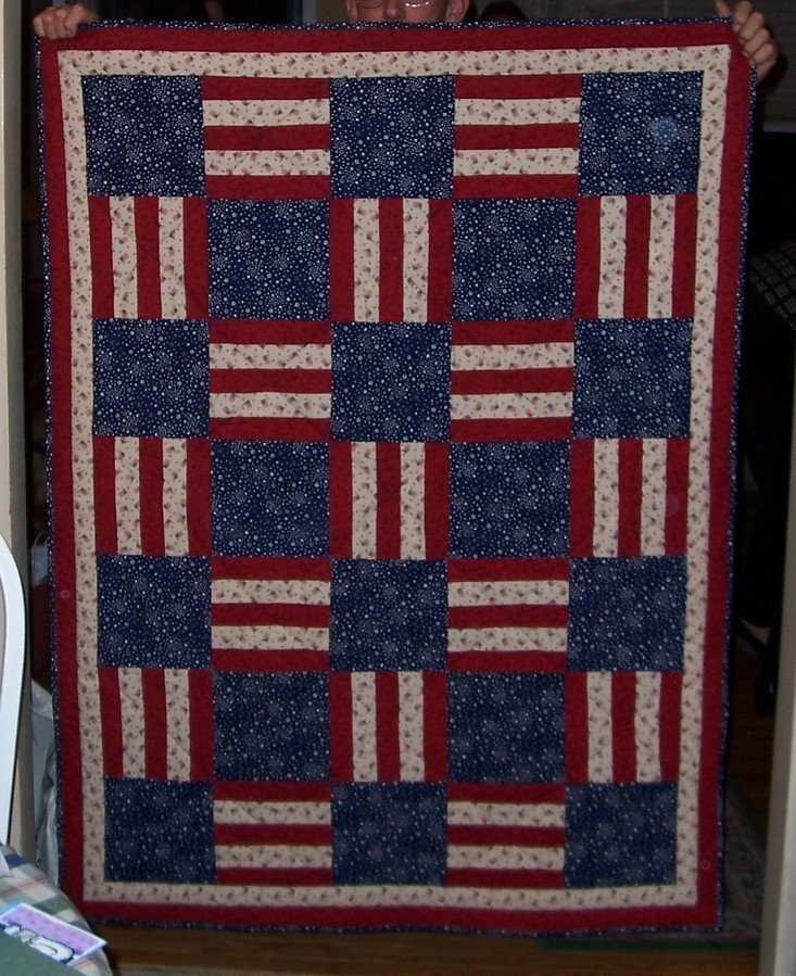 | Design Source - Description | I made this quilt for my brother on the occassion of his 50th Birthday. He is a proud navy veteran and loves our flag and country with his whole heart. "And Long May She Wave" enough said. |