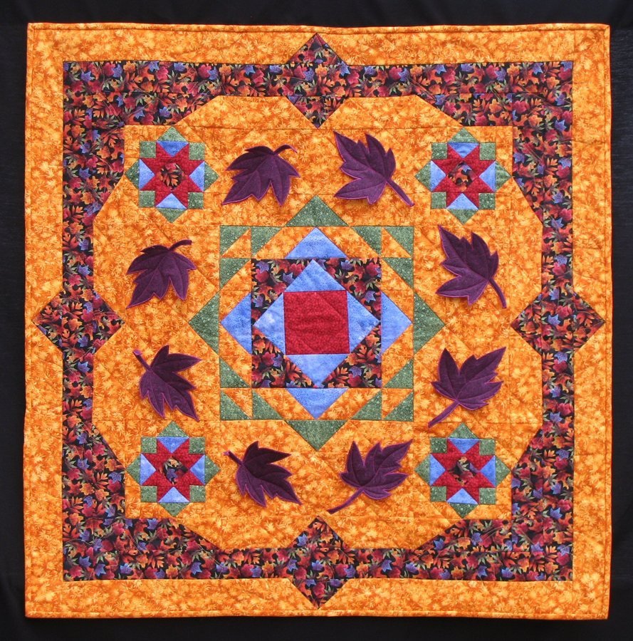 | Design Source - Description | The leaves are 3 dimensional and quilted to the quilt through the center stem. I pieced the back from the leftover fabric and the hanging sleeve from extra small blocks. |