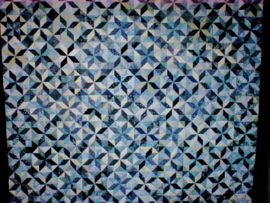 Nerak Winter Stars - I collected 'blue winter' fabrics for several years before starting on this, my first 'large' quilt not from a pattern. It is my 'January' quilt for the wall gallery in my dining room.