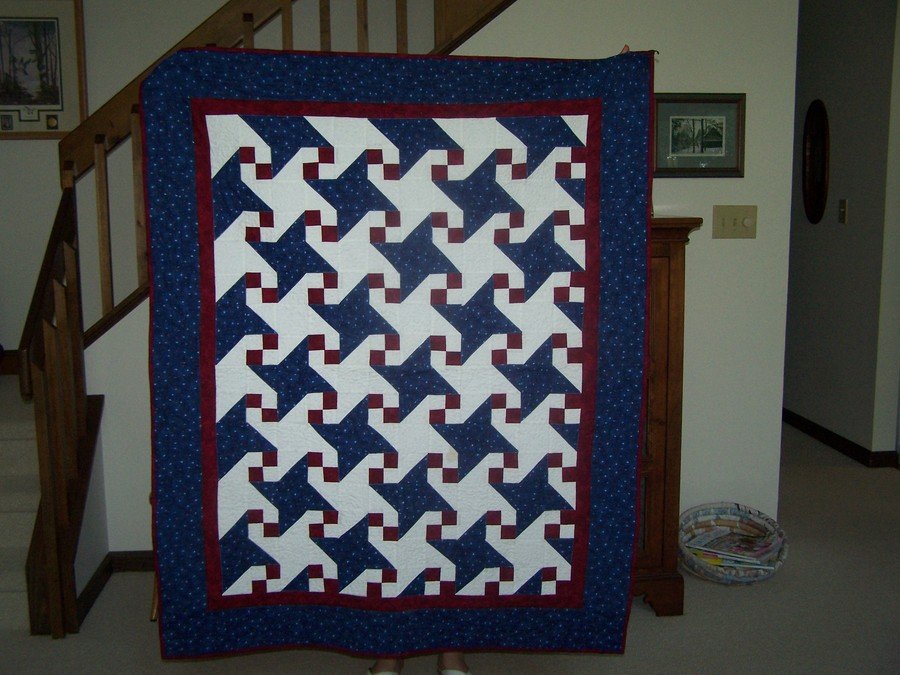 | Design Source - Description | This quilt is a lap size quilt in Milky Way block. Colors used are blue, white and deep red. Quilting is in the ditch and meandering. |