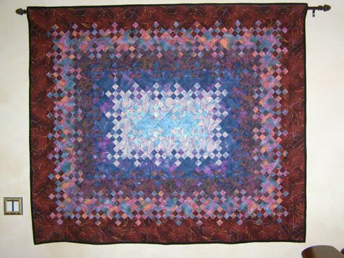 Jshulem Liquid Nature - My first quilt of the type. Since it was also the largest quilt I had made as of then, I didn't know how to quilt it on my Bernina tabletop, so I hired a fabulous quilter I met in Petaluma to do it and she did a marvelous job. The entire quilt was done in a month over summer. Mostly Batiks - my favorite.