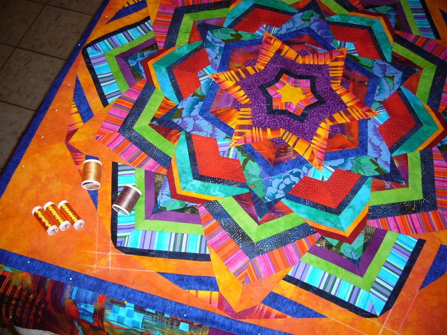 kimcanuck September Sunset - My first RT Kaleidoscope quilt! While attending Ricky's retreat in September 2006, I was inspired to try this intriguing technique. I was very discplined to stay focussed on the project I had brought with me to work - but the minute I got home I chose the fabrics and started to work. I have now made 3 and anticipate more to come!