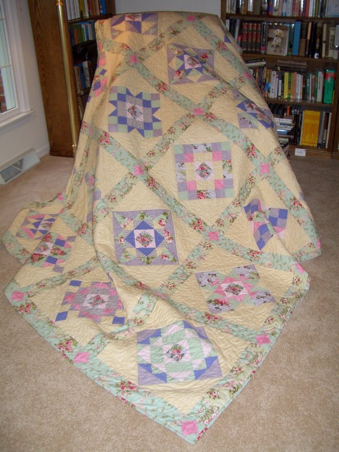 kplaposata Sweet Spring - The Quilters' Haven quilt shop in Bethlehem, PA, had a block of the month in 2006 using Marti Mitchell's Anniversary Waltz. I expanded the 12 blocks to 20 by repeating blocks using different color placement. The resulting quilt was a gift to my mother.