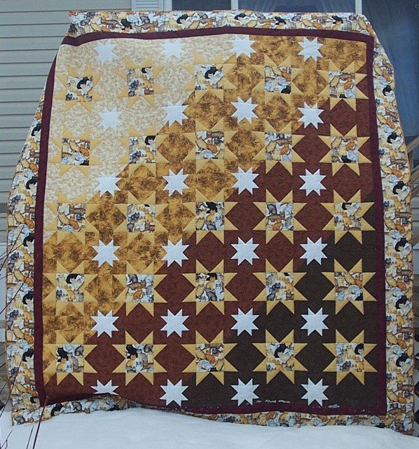patchyfriend My Cat's a Star - This quilt was designed to utilize a cat print and made in remembrance of our pet cat; Joe aka "Fluffy" aka "Monster Cat".
