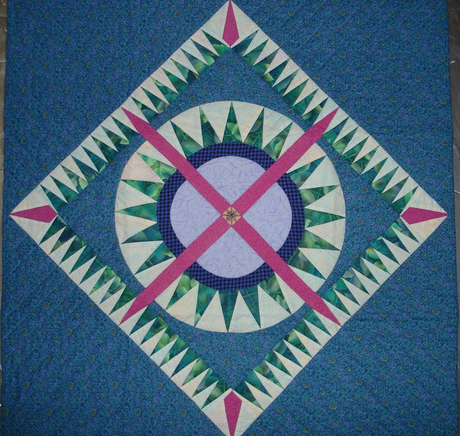 PeggyO Blue Beauty - Paper pieced New York Beauty blocks make this look more difficult than it is.