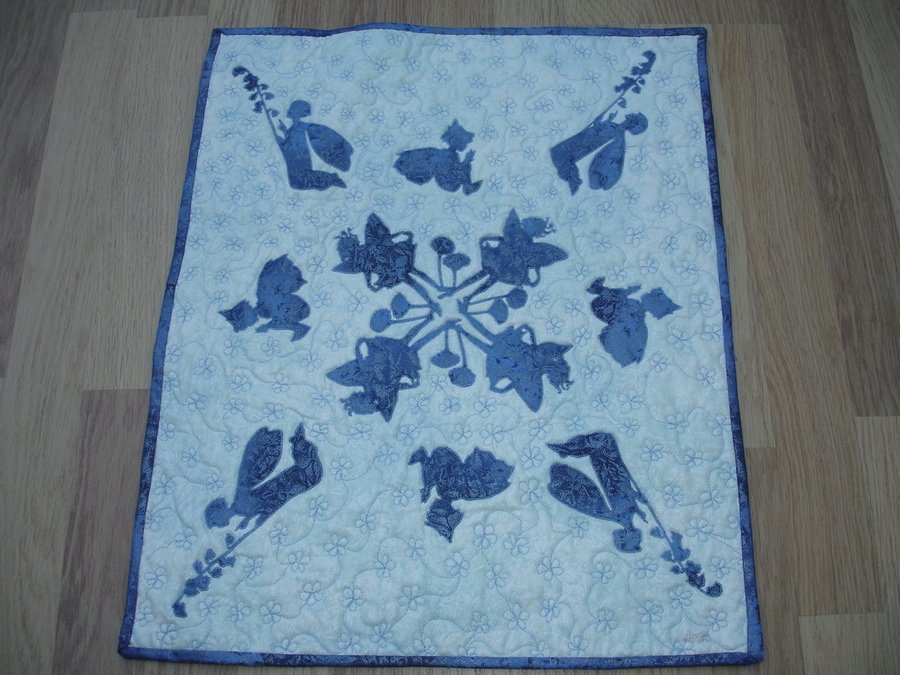 julesb fairies in a frosty garden - I made this wall hanging as my daughter loved all the flower fairy books so I appliqued shadows of flower fairies on the fairy frost fabric which I love to use.