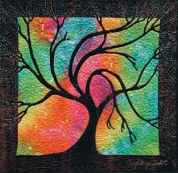 | Design Source - Description | tree dancing in the wind Dyed background fused tree. free motion quilted |
