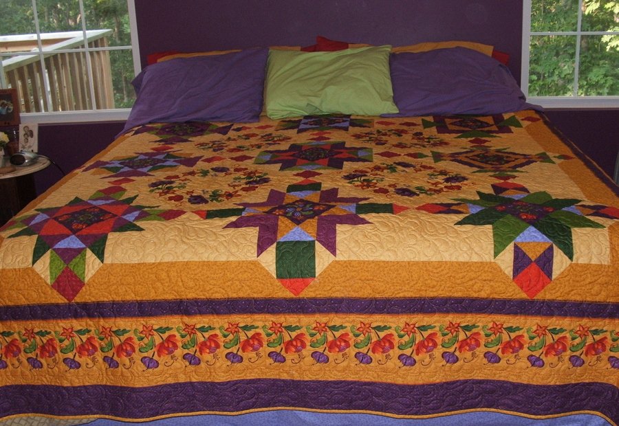 backporchquilts Harvest Spice - This was a block of the month at Circle of Friends Fabrics in Osage Beach, Missouri. I added borders to make it work for a king size bed.