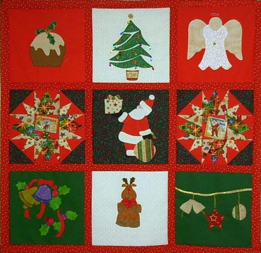 | Design Source - Description | My first attempts at applique - some of the blocks are from other members of the swap group and I did one extra applique block (Santa block and Bells block are mine) and 2 paper pieced Xmas stars to make up the 9 blocks. |