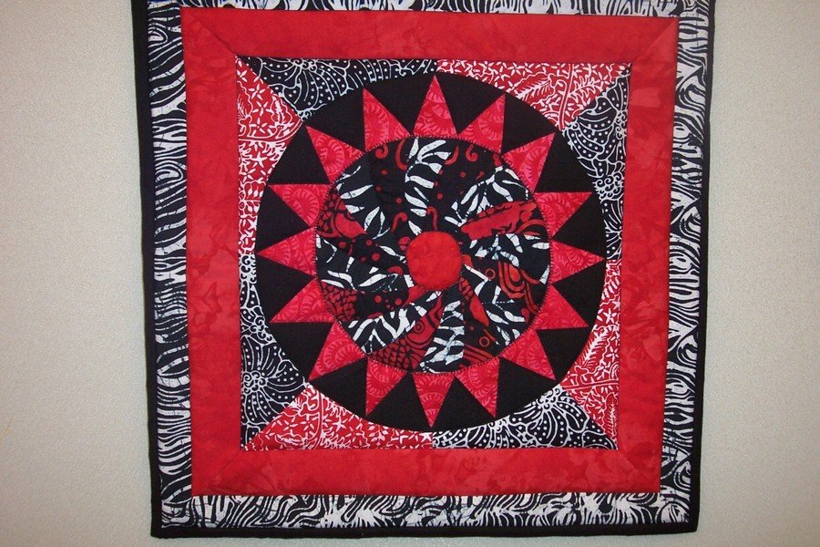 SonomaQuilts Mick's 25th birthday - Mick, my daughter's boyfriend, was drawn to red and black fabric in a quilt shop in Portland when I visited in March. I wanted him to have something to look at while studying at Chiropractic School. How could I not make him something; he went with us hopping from shop to shop.