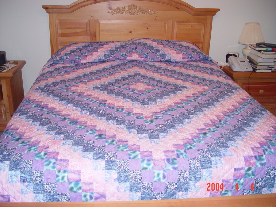 quiltergrl My First Quilt - Being a new quilter at the time, I didn't think twice about starting a queen size quilt!! Took me a while but it was worth it. I even tried to quilt it on my home machine--it didn't take very long for me to realize that I was fighting a losing battle : _ ) It ended up quilted by a longarm quilter!! It now lives on our bed!
