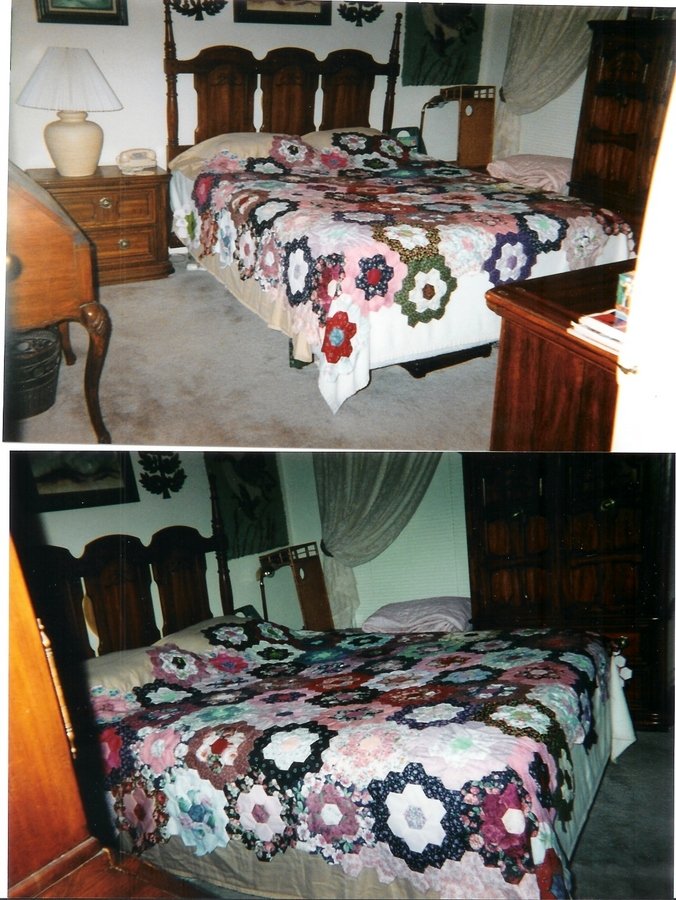 texasshorty Grandmother's Flower Garden - Used freezer paper; top is stitched entirely by hand over 5 years - at work during lunch hour