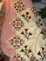QuiltBob A Modern Victorian - Almost Finshed quilt. Quilted all but the Borders. Designed in EQ4 originally and inspired by the Moda Folk Art Wedding Fabric. Pieced Blocks were paper pieced because of unuaual block size. Center Initial are "V" & "I" for my daughter, Victoria, who is a very "modern" Victoria.