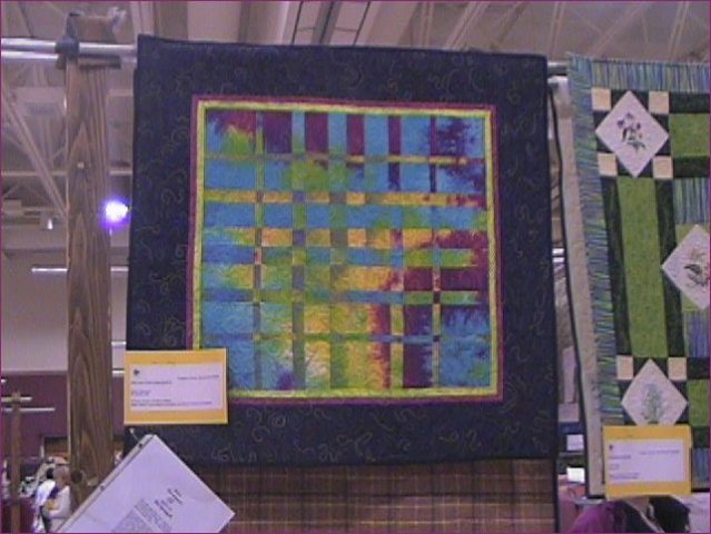 QuiltBob Solar Convergence - This was started in the first class I took from Ricky and has become a favortie of my family. Being a sci-fi fan I immediately saw two suns colliding, hence the name. The quilting is in a varigated thread and suggest the flow of "stellar" material from one sun to the other.