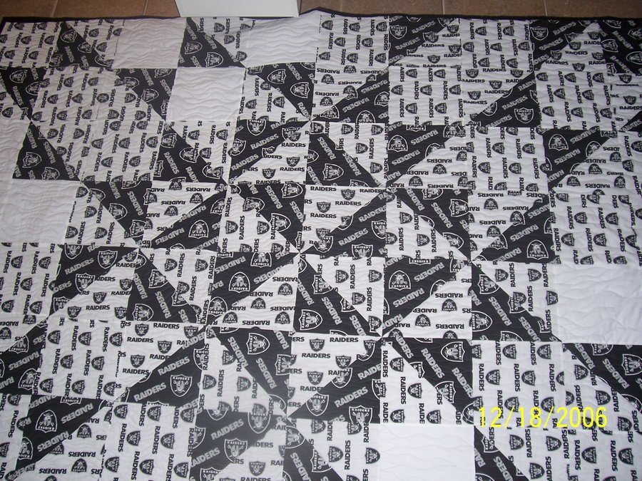 | Design Source - Description | made this one for Aidan's uncle Scott for Christmas. He is a huge fan of the Oakland Raiders, so black and white seemed perfect for this one. simple triangles twisted and turned to make the eyes go everywhere! |