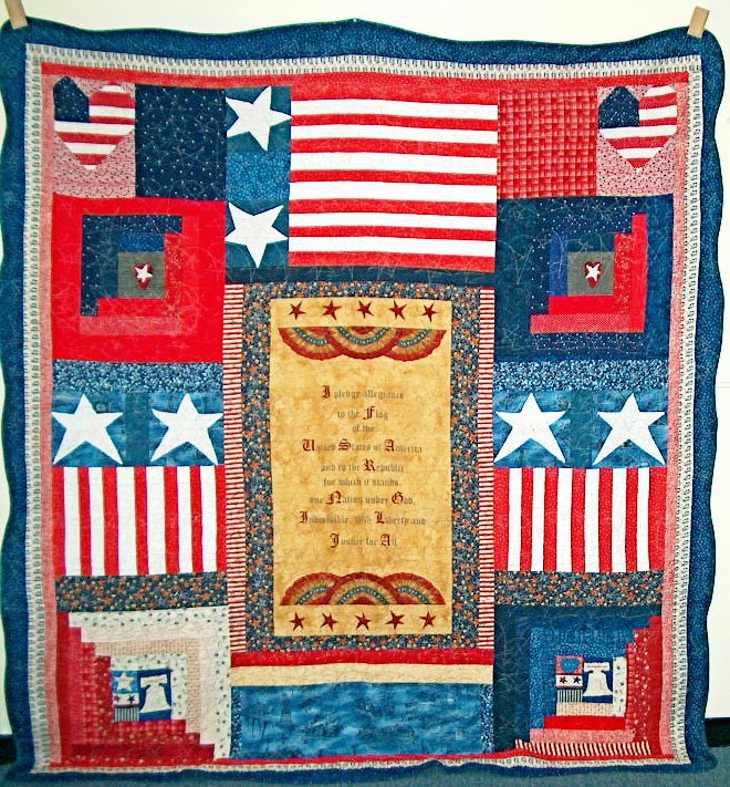 | Design Source - Description | Patriotic quilt constructed around a panal of the Pledge of Allegiance |