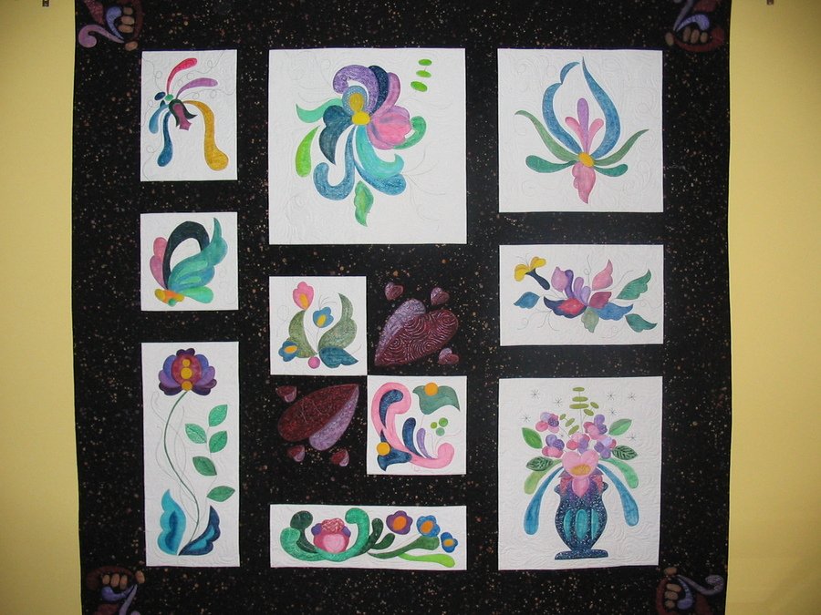 NanaB13 Nowegian Flower Garden - This is an applique pattern that I did by making freezer paper stencils and painting with Paintstiks. I loved to look of Rosemalling and being Norwegian I had to have the pattern. But after 5 years and no time to applique I decided using by Paintstiks I could get the quilt finished.