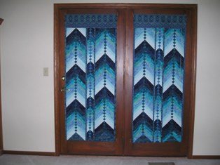 JackieOL Shades of Frank Lloyd Wright - These are Roman Shades in my bedroom. I love the way they turned out! The strips are cut one inch smaller that the pattern called for and I omitted the center braid. You can not tell from the picture, but when the sun shines on the shades they look like stained glass because of the multi layers of the seams.