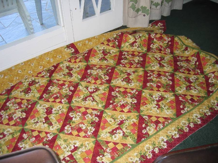 peggiew Mom's Quilt - I made this quilt because I loved the pattern - but when it was finished it reminded me of my Mom, so decided to give it to her. She has a sunny disposition and loves flowers so the quilt was a perfect fit with her personality!. I think she will be able to use it one or two days per year in Mesa, AZ! Great pattern! This quilt went together quickly!