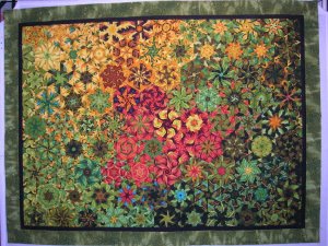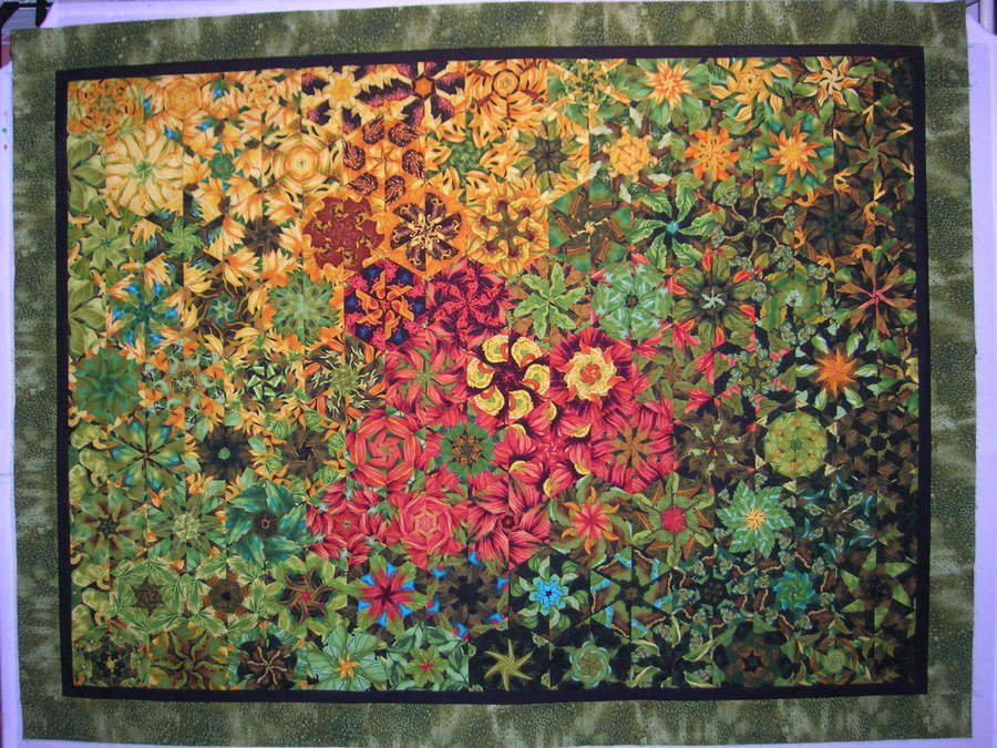 Pattiwatti "Organized Chaos" - This is just another of my collection of kaleidoscopes and actually the 5th of this particular pattern. The 100% cotton fabric was a print of bright yellow and gold daises amongst other florals and greenery. What can I say, I'm addicted.