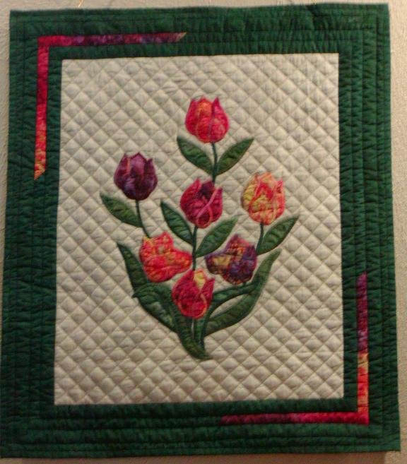 jkwelch Spring Tulips - This quilt is one of my favorite wall quilts. It uses bias strips for the applique. All the different colors of tulips came from one wonderful piece of batik fabric.