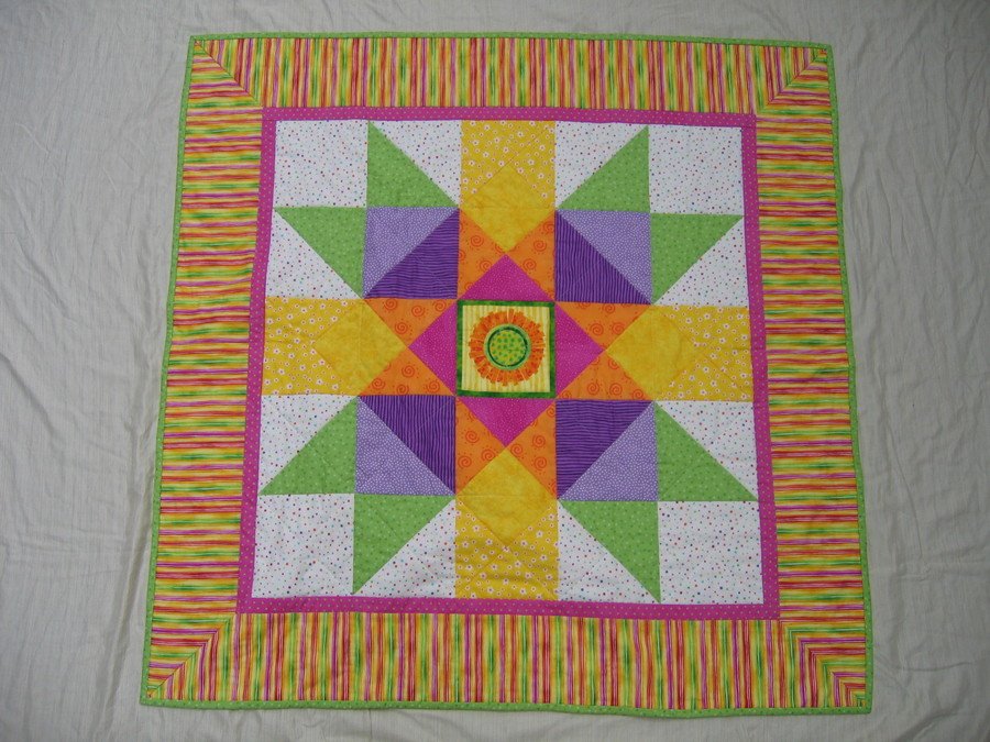 dickelg Anna Cate's Star Quilt - I chose to use bright fabrics for this baby quilt for Anna Cate, my great niece. There is only one large star quilt block, with two borders, so it went together easily.