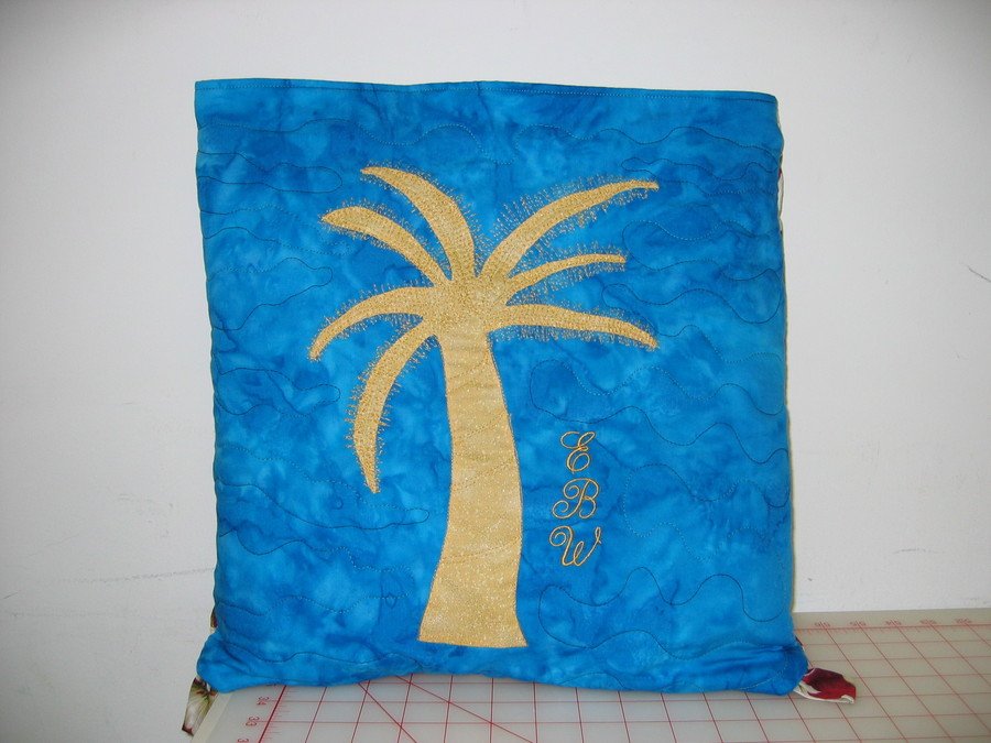 | Design Source - Description | This is the pillow top for a quillow I made for my niece. She asked for a gold palm tree, as she's from the windy city and loves visiting her Fla family. |