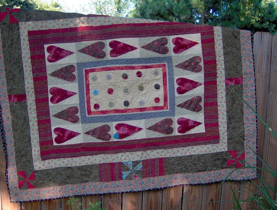 kella Blue Boy Blue - I made this for my bestfriend of 35 yrs. for her birthday. We have 'code words' that we use when we are being crazy and stupid. "Blue boy" is the code...I wanted this to be a quilt of a lot of yo-yo's. I have been working on a series of yo-yo quilts that I hope one day to have published all in one book. I only used 2 blue yo-yo's in this quilt. A yo-yo for her and a yo-yo for me. BLUE BOY!