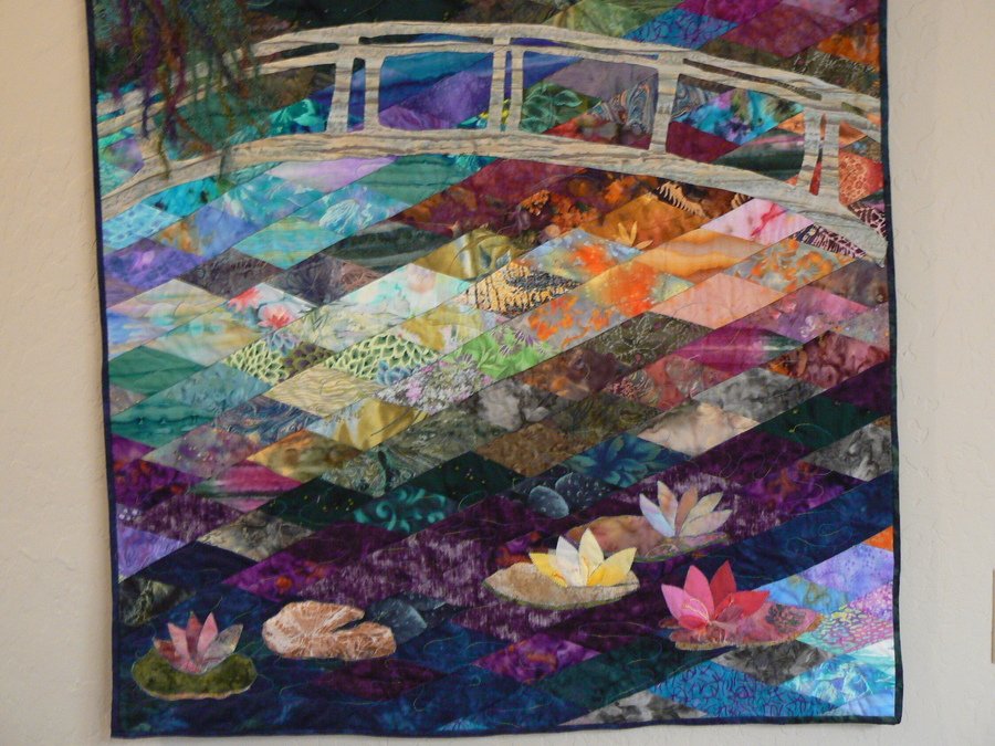 jbtaz36 Monet's Pond - Done in a class taught by Jan Krentz in AZ using diamond shapes over a large grid. Had fun embellishing even adding 3 dimensional water lillies.