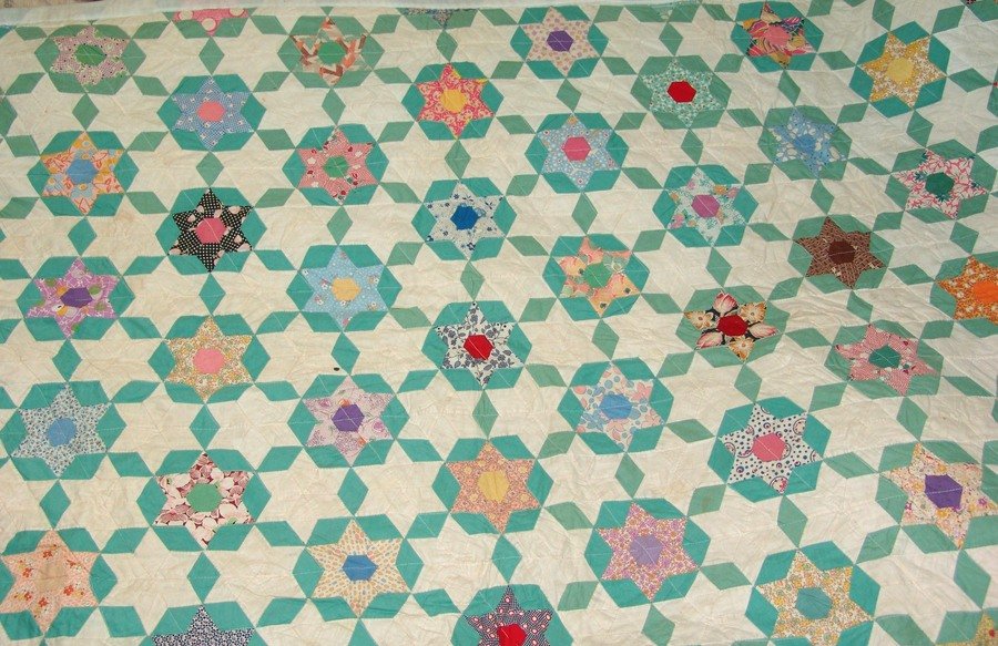 | Design Source - Description | My husband's grandmother presented this to us for our wedding in 1981. The fabrics are from his mother's and aunt's dresses made by their mother Bettie Draper in the 30s & 40s. |