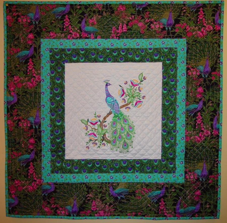 | Design Source - Description | The peacock in this quilt was machine embroidered by me on my Bernina 200E sewing machine. I machine quilted the quilt using the same home sewing/embroidery machine. |